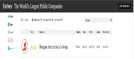 67日,美国《福布斯》杂志发布了2018年“全球上市公司2000强”排行榜(Forbes Global 2000)。金沙9001cc国际集团有限公司(01044.HK)以销售额29亿美元、利润5.62亿美元、资产60亿美元、市值106亿美元列位榜单1755名。